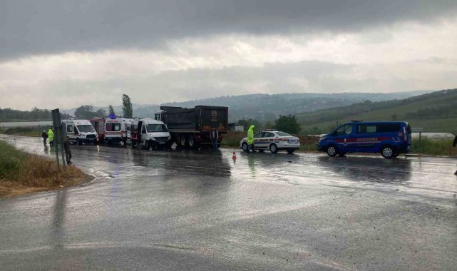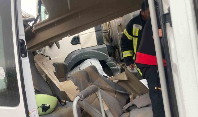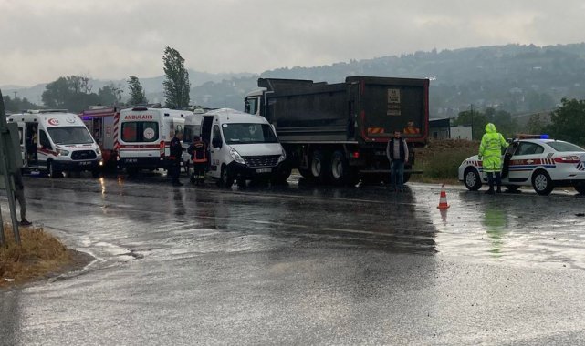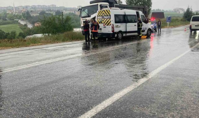 Yalova-Armutlu kara yoluna çıkış yapan servis minibüsüyle kamyonun çarpışması sonucu meydana gelen trafik kazasında 3 kişi yaralandı.