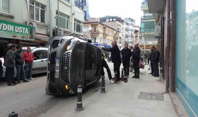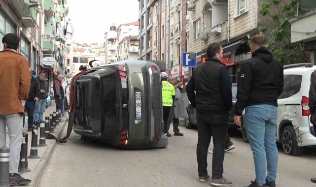 Yalova'da park halindeki araçlara çarpan cip yan yattı