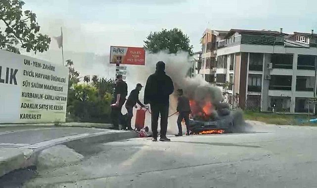 Alınan bilgiye göre, Dere Mahallesi Kaptan Sokak'tan Vatan Caddesi'ne çıkış yapan 31 N 6474 plakalı otomobilin motor kısmından dumanlar yükselmeye başladı. Dumanları gören sürücü aracını yolun kenarına çekti. Kısa sürede motor kısmı alevlere teslim olan otomobili sündürmek için ilk müdahaleyi sürücü ve çevredeki vatandaşlar yangın söndürücülerle yaptı. Bölgeye sevk edilen itfaiye ekipleri yangına müdahale ederek söndürdü. Ekipler ardındansa soğutma çalışması gerçekleştirdi.