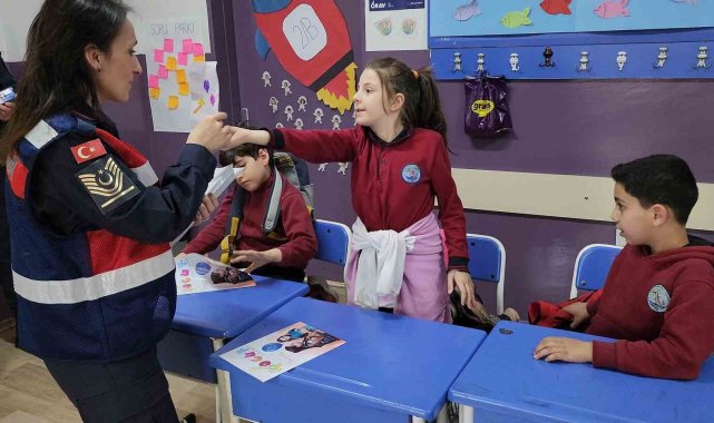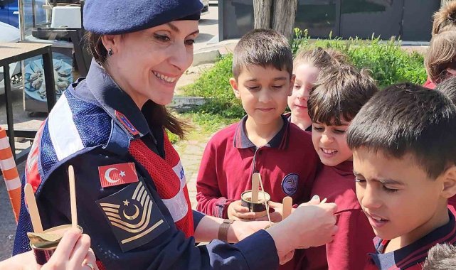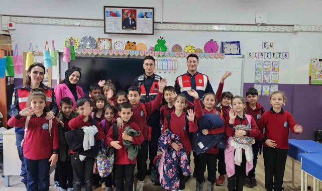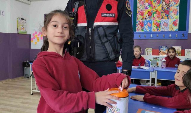 Öte yandan proje çerçevesinde jandarma öğrencilere çocuk dergisi ve frizbi hediye etti.