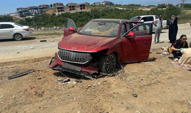 Yalova'da Togg marka otomobil 4 metre yükseklikten yola uçtu: 2 yaralı