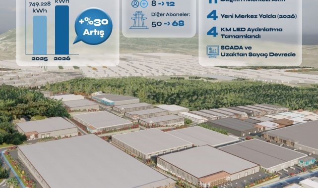Sanayi bölgesindeki üretim kapasitesinin genişlemesiyle birlikte enerji tüketim verileri de yukarı yönlü seyrini sürdürdü. 2025 yılı toplam elektrik tüketimi 3 milyon 930 bin 742 kWh olarak gerçekleşirken, yılın ilk iki ayı karşılaştırıldığında büyüme daha net ortaya çıktı: 2025'in ilk iki ayında 749 bin 228 kWh olan tüketim, 2026'nın aynı döneminde 974 bin 87 kWh'e ulaşarak yüzde 30'u aşan bir artış kaydetti.