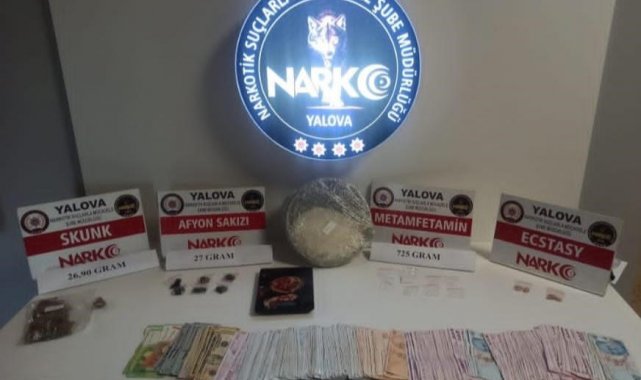 Alınan bilgiye göre, Yalova Emniyeti Narkotik Suçlarla Mücadele Şube Müdürlüğü ekipleri İstanbul ilinden uyuşturucu madde getirdiği bilgisine ulaştığın Ş.K'yi İDO iskelesinde gözaltına aldı. Şahısın üst aramasında 53 gram metamfetamin ele geçirdi. Polis şahsın irtibatlı olduğu S.K.G. ve R.P'nin İstanbul ilindeki ikametlerinde yaptığı aramada ise 725 gram metamfetamin, 27 gram Afyon sakızı, 27 gram skunk, 10 eXtaCy, hassas terazi, uyuşturucu madde satışından elde edildiği değerlendirilen 54 bin 100 TL, bin 230 Amerikan doları ve 310 Euro ele geçirildi.