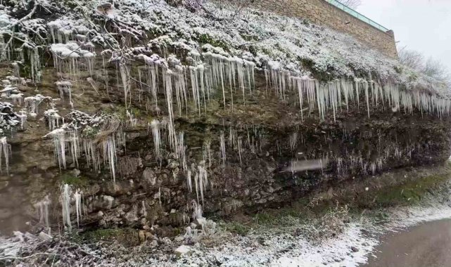 Yamaç ve kayalıklarda buz sarkıtlar oluştu