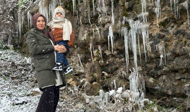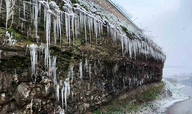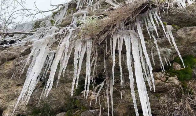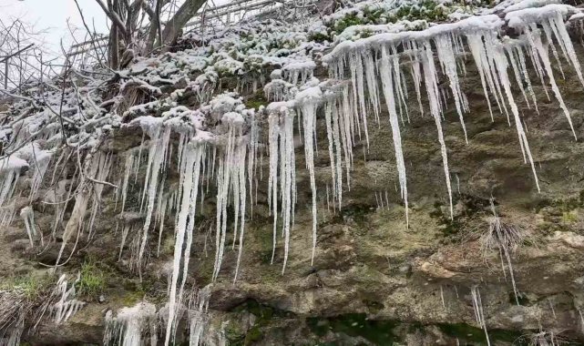 Hava sıcaklıklarının sıfırın altında 7 dereceye düştüğü Karabük'ün Safranbolu ilçesinde yamaç ve kayalıklarda sarkıtlar oluştu.