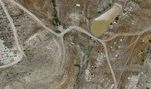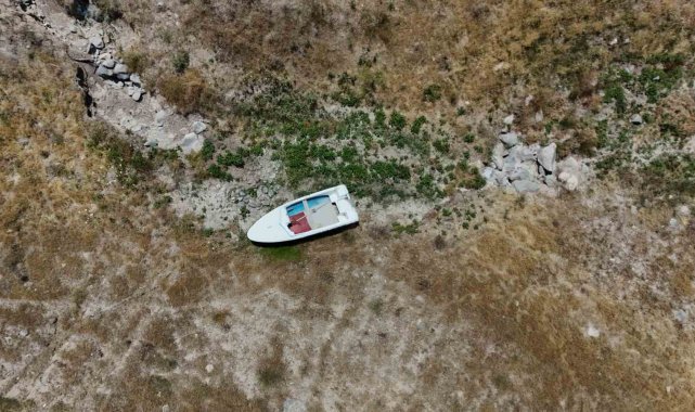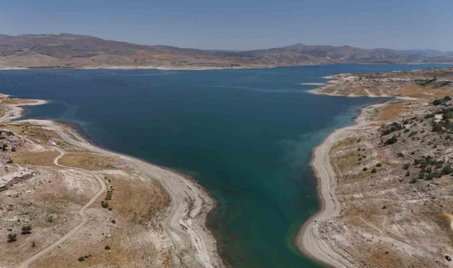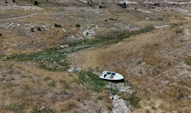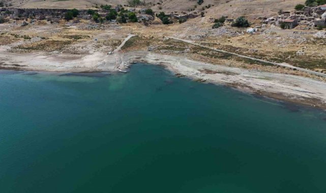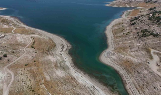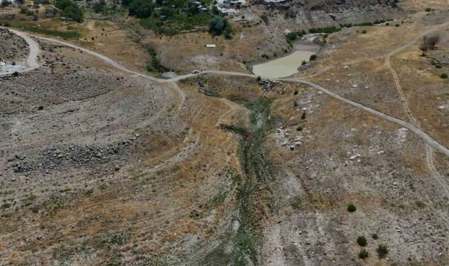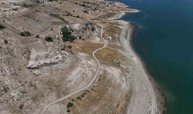 Kayseri'de, Yamula Barajı'ndaki suların sıcaklar nedeniyle çekilmesinin ardından eski mahalleler ve yollar ortaya çıktı.