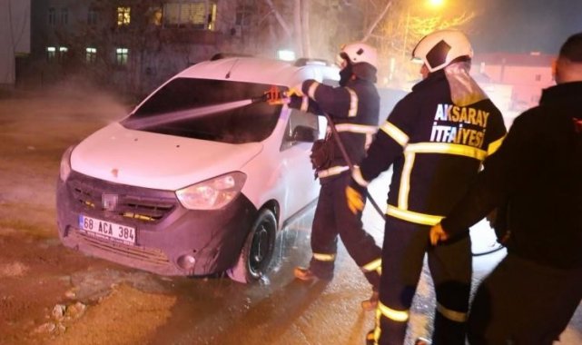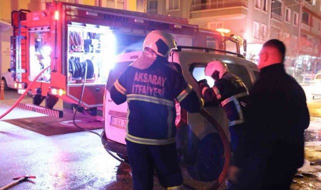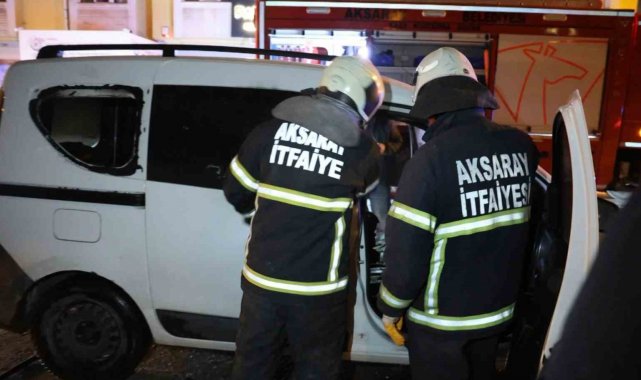 Olay, Meydan Mahallesi Meydan Caddesi'nde yaşandı. Edinilen bilgiye göre, caddeden geçen Aksaray İl Jandarma Komutanlığı'nda görevli 2 askeri personel park halindeki 68 ACA 384 plakalı hafif ticari aracın altından dumanlar çıktığını gördü. Askerlerden biri aracındaki yangın tüpünü alarak yangına müdahale ederken diğer askeri personel durumu hemen 112 Acil Çağrı Merkezi'ne bildirdi. İhbar üzerine olay yerine polis ve itfaiye ekibi sevk edildi. Kısa sürede yangın mahalline gelen polis ekipleri caddede güvenlik önlemleri alırken, itfaiye ekipleri de yangına müdahaleye başladı. Aracın kapılarının kilitli olması nedeniyle itfaiye bir süre dışarıdan müdahale ederken, daha sonra kazmayla aracın yan arka camı kırılarak içeriye su püskürtüldü. İtfaiye eri yangının tamamen sönmesi için kırılan camdan araç içine su tutarken hiç beklenmedik bir anda parlama oluştu. Araç içindeki parlama alevle birlikte dışarıya püskürürken, yangına müdahale eden itfaiye eri ve o anları görüntüleyen haber kameramanı kafasından hafif şekilde yaralandı. Daha sora olay yerine gelen aracın sahibi kapıları açarken, içi kül olan araca itfaiye ekipleri soğutma çalışması yaparak yangını tamamen söndürdü. Yangının neden çıktığı henüz belirlenemezken araçta büyük çapta maddi hasar oluştu.