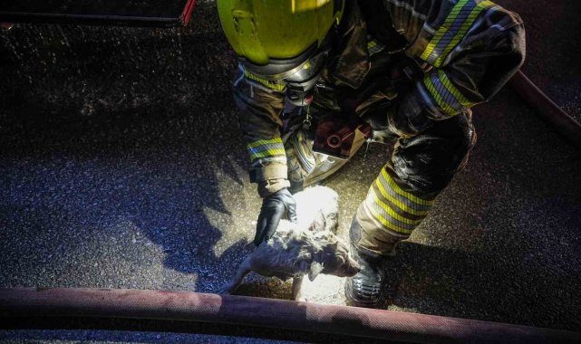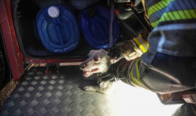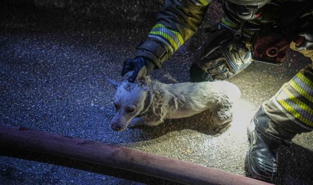 Yanan binadaki köpeği itfaiye ekipleri kurtardı