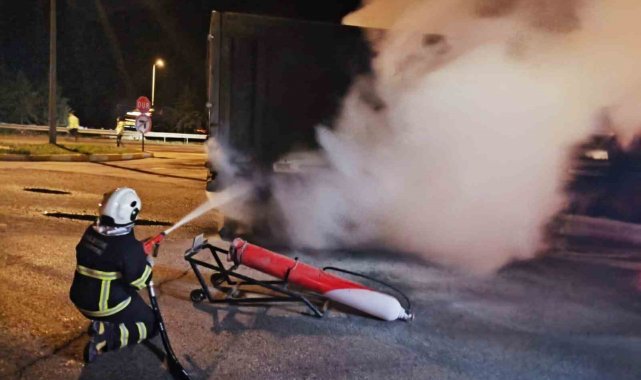 Alınan bilgilere göre, Eskişehir-Bilecik-Sakarya karayolunda seyir halindeki S.A. idaresindeki 43 ACV 945 plakalı kamyon Osmangazi Tüneli çıkışında tekerliklerinden alevler yükselmeye başladı. Sürücü aracı yol kenarına park ederken, yangına Bilecik Belediyesine ait itfaiye ekipleri müdahale etti. Yangın araca sıçramadan söndürülürken, lastikleri kullanılmaz hale geldi.
