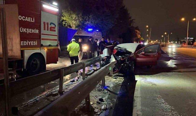 Kocaeli'nin Gebze ilçesinde bariyerlere çarpan otomobilde yangın çıktı. Araç içinde sıkışan sürücü, itfaiye ekiplerinin müdahalesiyle kurtarıldı.