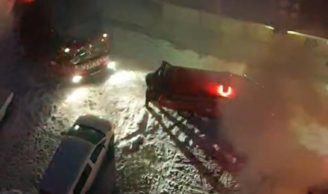 Çevredeki bir vatandaş İtfaiye ekipleri gelene kadar, yanan otomobile kar küreği ile kar atarak müdahale etti. O anlar ise çevredeki bir başka vatandaş tarafından cep telefonu ile görüntülendi.