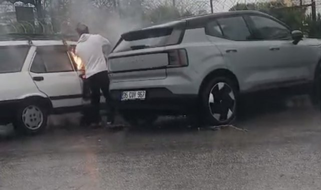 İzmir'in Torbalı ilçesinde park halindeki bir otomobilde çıkan yangın, vatandaşların hızlı müdahalesiyle büyümeden söndürüldü. Bir vatandaşın yol kenarındaki su birikintisinden kova ile su taşıyarak alevlere müdahale etmesi dikkat çekti.