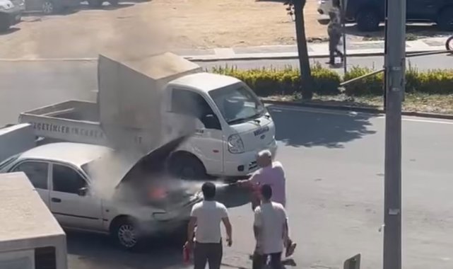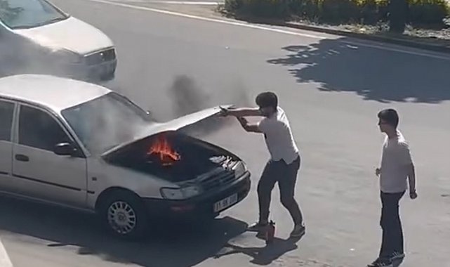 Olay Düzce Kent Merkezi Kızılay Kavşağında meydana geldi. Alınan bilgilere göre seyir halinde kavşağa gelen ve kavşakta ışık bekleyen otomobilin motor kısmından dumanlar yükseldiğini gören sürücü araçtan inip kontrol etmek istedi. Sürücünün kaputu kaldırmasıyla alevlerin yükseldiğini gören vatandaş yangın söndürme tüpüyle alevleri söndürmek istedi. Çevredeki vatandaşların da yardımıyla motordan çıkan alevler diğer sürücülerin yangın tüplerini getirmesiyle söndürüldü. Yangın sebebiyle otomobil trafiği tek şeritte düşürürken araç bölgeden çekici ile kaldırıldı.