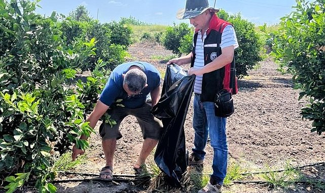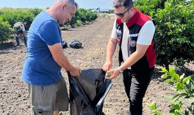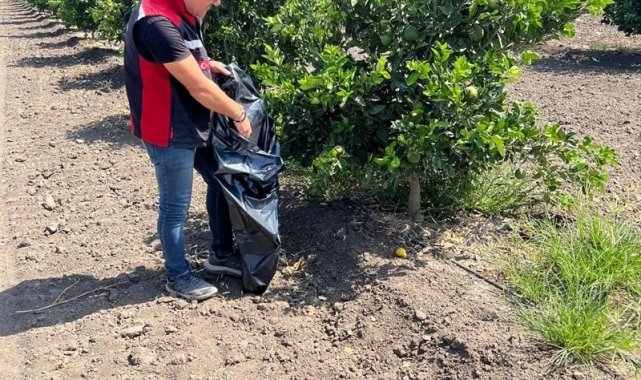 Adana'da Ağustos ayında yaşanan aşırı sıcak nedeniyle yanan turunçgillerin dökülerek Akdeniz Meyve Sineğine neden olmaması için çalışma başlatılarak ağaç diplerindeki dökülen ürünler toplatıldı.