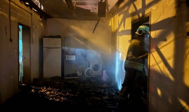 Manisa'nın Turgutlu ilçesine bağlı Derbent Mahallesi'nde meydana gelen yangında bir ev tamamen yanarak kullanılamaz hale geldi.
