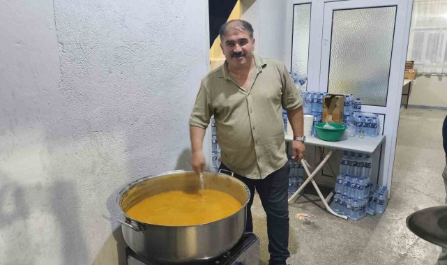Karabük'ün Ovacık ilçesinde yangının yeniden alevlendiği köyde muhtar yangına yardıma gelenlere çorba yaptı ve onlara ikram etti.