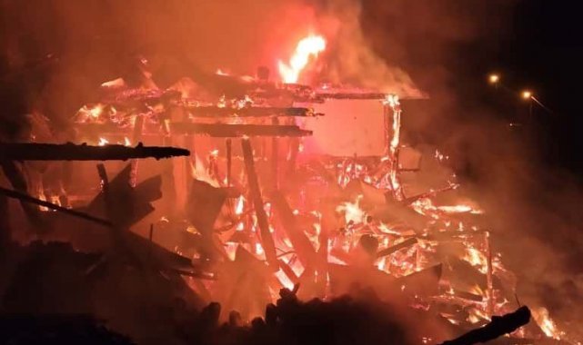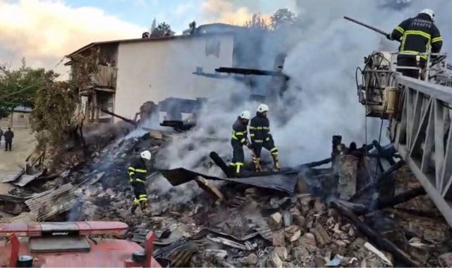 Yangın çıkan ev çöktü, iki kardeş enkaz altında aranıyor