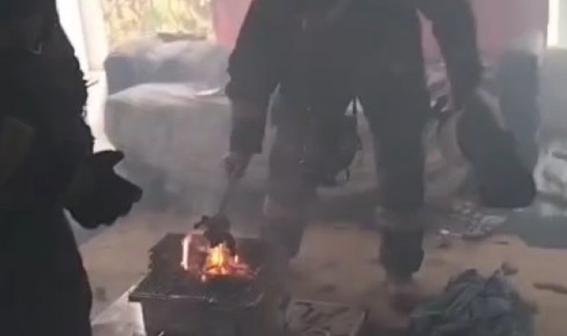 Yangın ihbarına gelen itfaiyeye evin içinde 'mangal' sürprizi