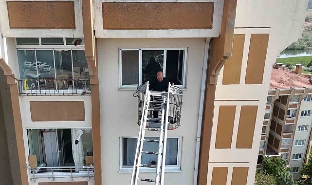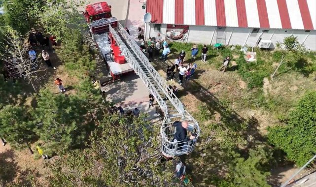 Yangın paniğe neden oldu, apartman sakinleri itfaiye merdiveniyle tahliye edildi