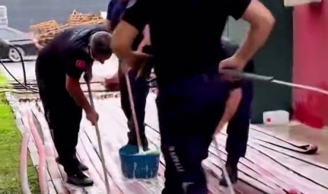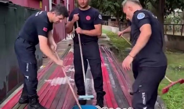 İtfaiyecilerin kendi elleriyle gerçekleştirdiği temizlik çalışması sosyal medyada da paylaşılırken, vatandaşlardan da büyük beğeni topladı.