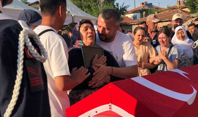 Eskişehir'de orman yangınında şehit olan 10 kişinin arasında yer alan Tolunay Kocaman, memleketi Seyitgazi'nin Kümbet mahallesinde gözyaşları içinde son yolculuğuna uğurlanırken, 1 hafta önce evlendiği eşi Burcu Kocaman ayakta durmakta güçlük çekti.