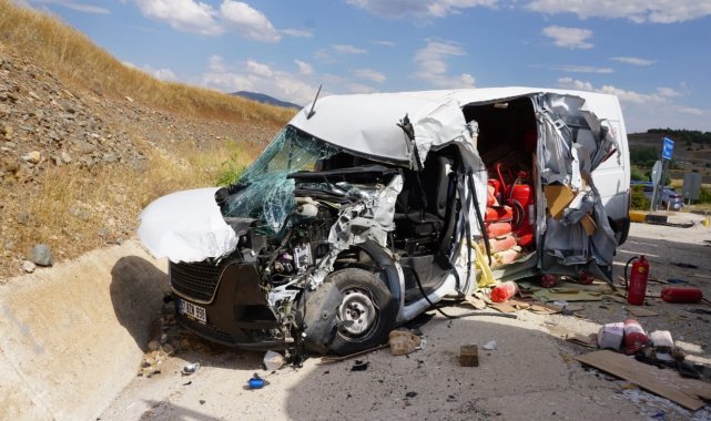 Yangın söndürme cihazı yüklü araç, süt tankerine çarptı: 1 yaralı