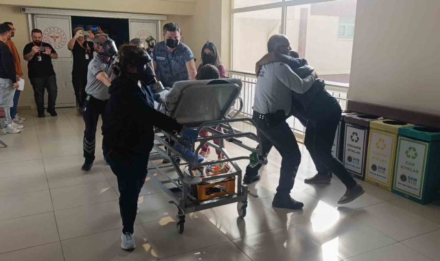 Senaryo gereği ikinci katta çıkan yangında, dumandan etkilenen yoğun bakım ünitesinde bulunan hastalar acil koduyla güvenli şekilde tahliye edildi. Tahliye sırasında fenalaşan hasta ve hasta yakını hastane çalışanları ve güvenlik güçlerine zor anlar yaşattı. Rolünün hakkını veren hasta ve hasta yakını rolündeki 2 hastane çalışanı oscarlık bir performans sergilerken yoğun bakım ünitesi önünde bekleyen hasta yakınlarının tatbikatı gerçek zannetmelerini sağladılar.