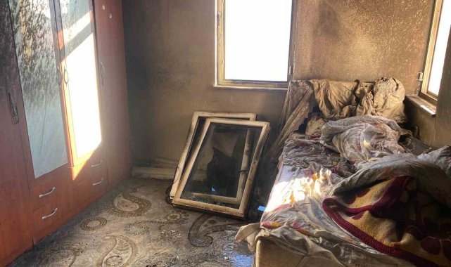Yangında evin bir odasında bulunan eşyalar tamamen yanarak maddi zarar meydana geldi.