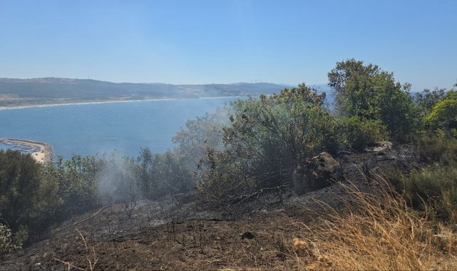 Bursa'nın Mudanya ilçesi Göktepe mevkiinde çıkan yangında yaklaşık 8 dönümlük zeytinlik ve çalılık alan zarar gördü. Alevlerin buğday tarlasına ulaşması son anda engellendi.
