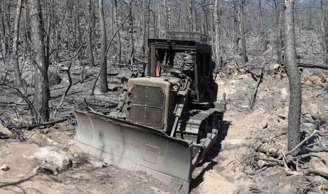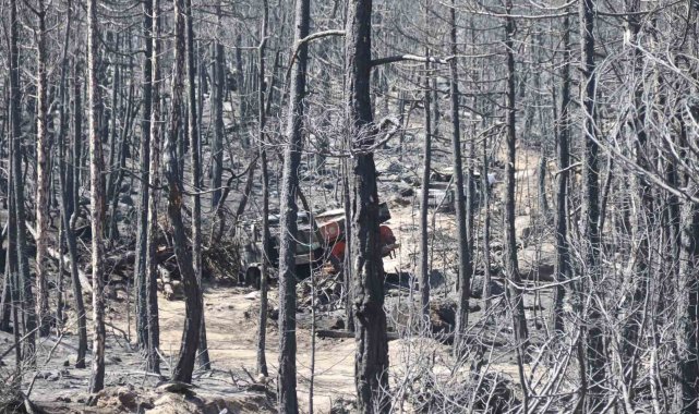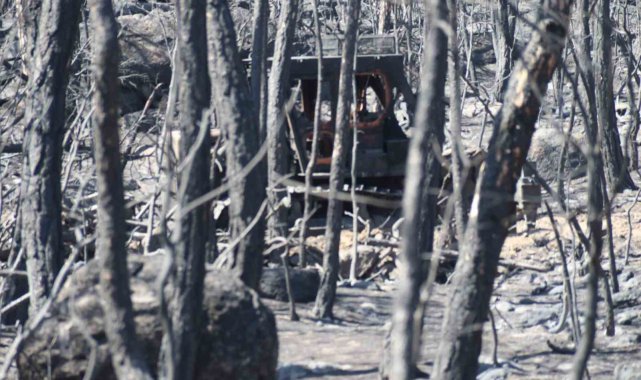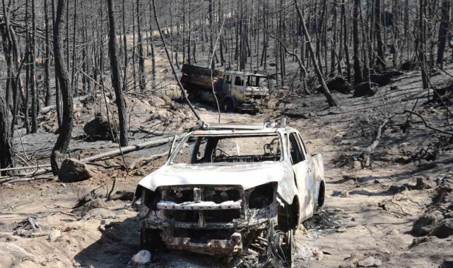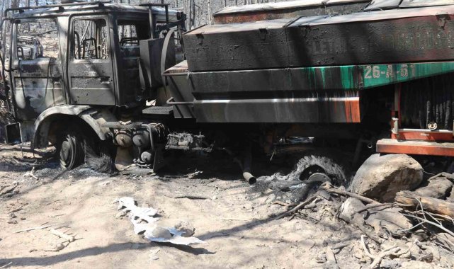 Eskişehir'de çıkan orman yangınında 10 kişinin şehit olduğu alana yakın bir noktada yanan araçlar görüntülendi. Bazı parçaları eriyen araçlardan su tankerinin olay yerinden çekildiği ve yerde sürükleme izleri olduğu görülürken, arazöz, pikap ve dozerin ise yakın zamanda olay yerinden çekileceği öğrenildi.