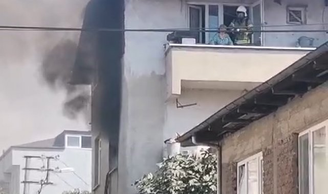 Bursa'nın İznik ilçesinde yangın esnasında 3'üncü katın balkonunda mahsur kalan yaşlı kadın kurtarıldı.