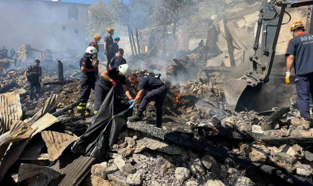 Yangında çöken evdeki 2 kardeşin ceset kalıntıları bulunarak adli tıpa gönderildi