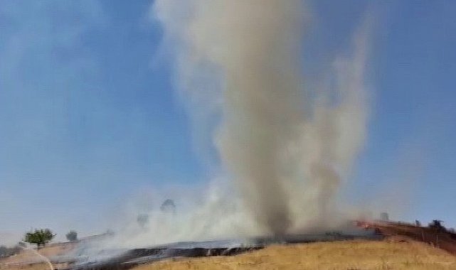 Adıyaman'da çıkan anız yangınlarında oluşan hortum, duman hortumuna dönüştü.