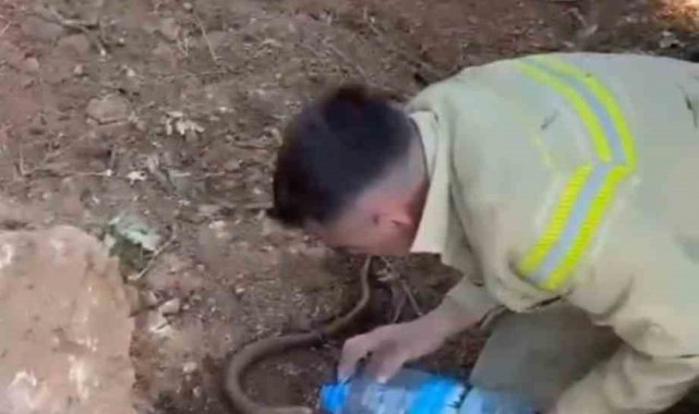Yangından etkilenen oluklu kertenkelenin yardımına orman işçileri yetişti