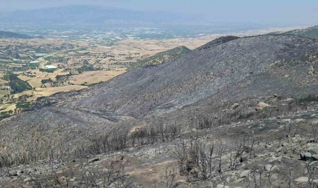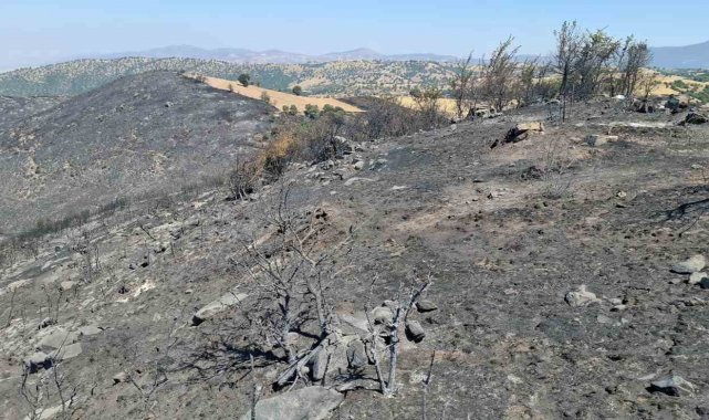 Manisa'nın Sarıgöl ilçesinde başlayıp Uşak'ın Eşme ilçesine kadar ilerleyen ve ekiplerin müdahalesiyle söndürülen yangından geriye küle dönen evler ve tarlalar kaldı.