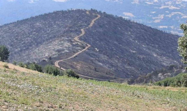 Yangından geriye küle dönen evler ve tarlalar kaldı
