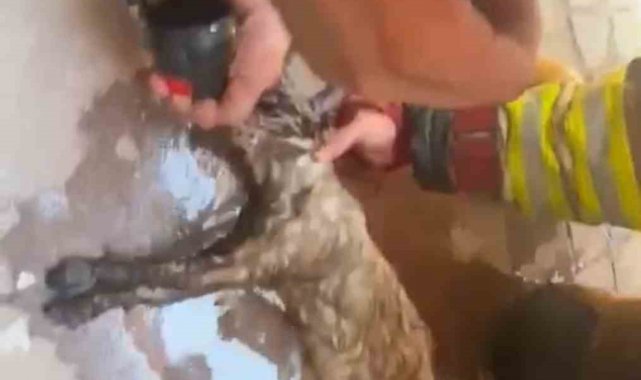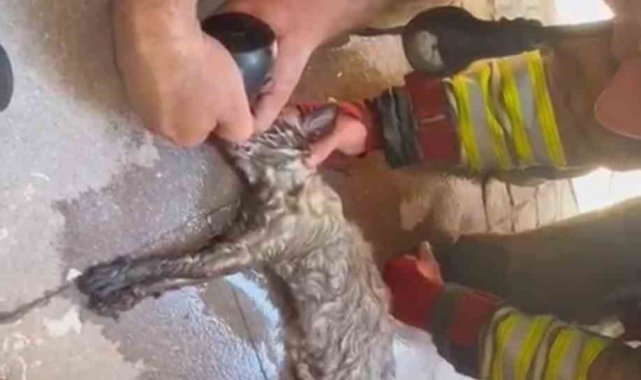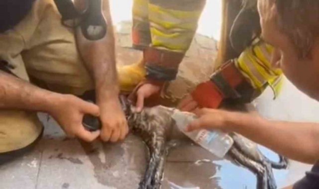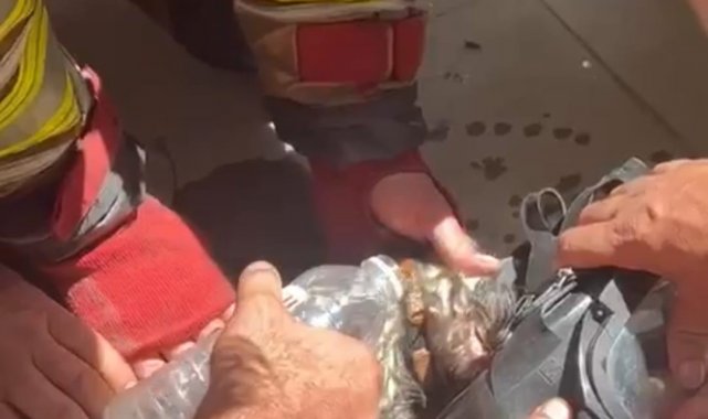 Yangından kurtarılan kediye itfaiye ekiplerinden kalp masajı
