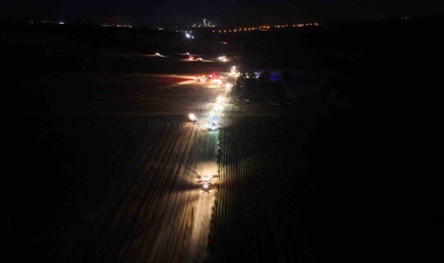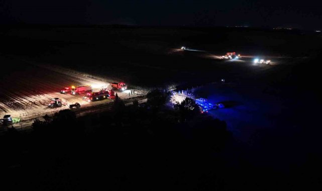 Edirne'de tarlada yangın çıktığını gören köy halkı, alevleri söndürmek için traktörleriyle olay yerine akın etti.