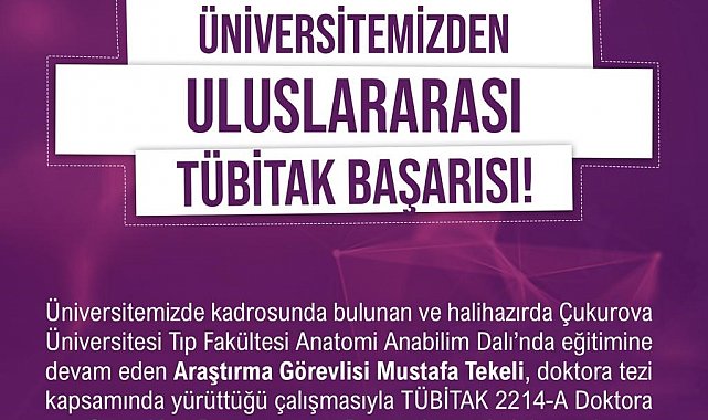 Niğde Ömer Halisdemir Üniversitesi kadrosunda görev yapan ve halen Çukurova Üniversitesi Tıp Fakültesi Anatomi Anabilim Dalı'nda eğitimine devam eden Araştırma Görevlisi Mustafa Tekeli, doktora tezi kapsamında yürüttüğü çalışmayla TÜBİTAK 2214-A Doktora Sırası Yurt Dışı Araştırma Bursu almaya hak kazandı.