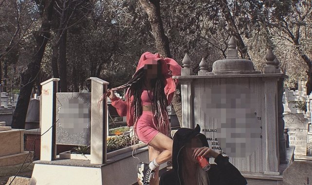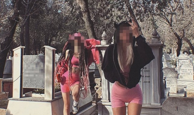 Yaptıkları paylaşımla tepki çeken genç kızlar, mezarlığa farklı kıyafetlerle girmişler