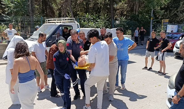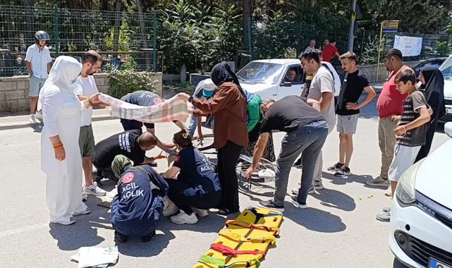 Bursa'nın İnegöl ilçesinde meydana gelen kazada otomobilin çarptığı bisikletli yaralandı. Vatandaşlar, yaralanan adamın üzerine örtü tutarak onu güneşten korudular.
