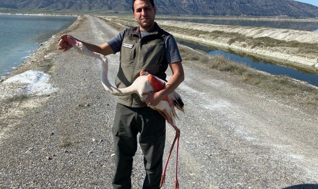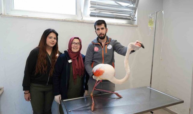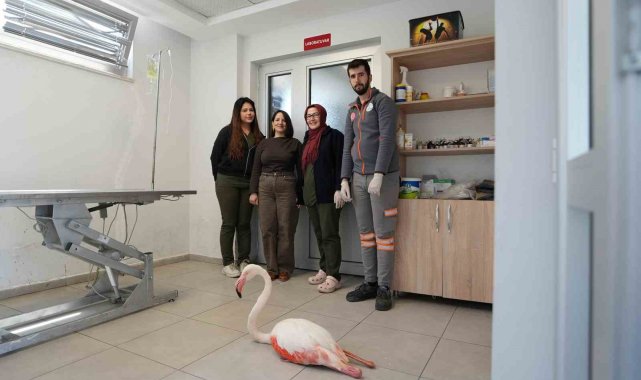 Yaralı flamingo tedavi edilerek doğal yaşama geri bırakıldı