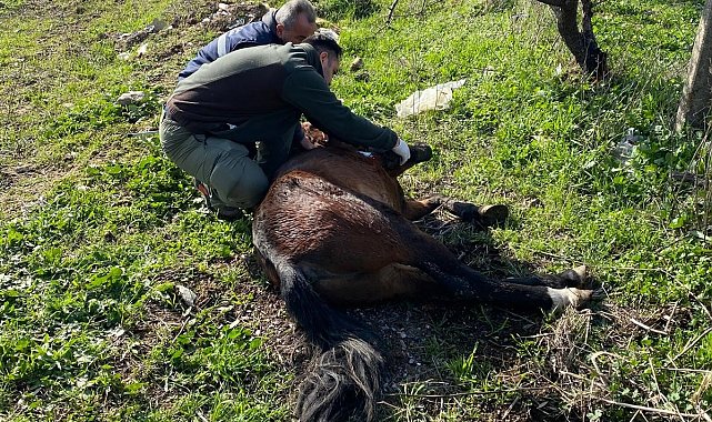 Yaralı halde bulunan yılkı atı tedavi edildi