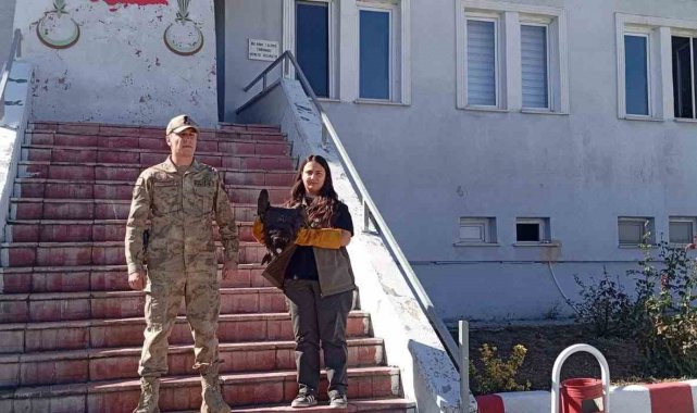 Bitlis'te jandarma personeli tarafından bitkin halde bulunan kara akbaba, tedavisi yapılmak üzere yetkililere teslim edildi.