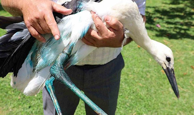 Yaralı leylek, Doğa Koruma ve Milli Parklar Müdürlüğü ekiplerine teslim edilecek.