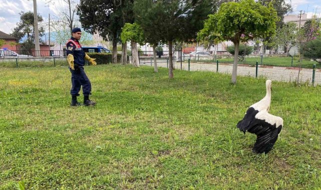 Aydın'ın Çine ilçesinde yaralı halde bulunan Leylek jandarma ekipleri tarafından koruma altına alınarak, tedavisi için doğa koruma ekiplerine teslim edildi.