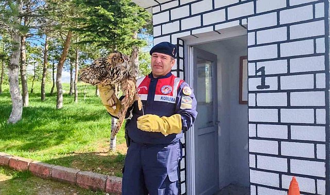 Yozgat İl Jandarma Komutanlığı Çevre Doğa ve Hayvanları Koruma Timi ekipleri, doğada yaralı halde puhu kuşu buldu.