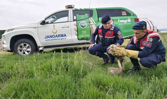 Gaziantep'in Araban ilçesinde doğada yorgun ve yaralı halde bulunan nesli tükenme tehlikesi altındaki şahine jandarma ekipleri şefkat eli uzattı.