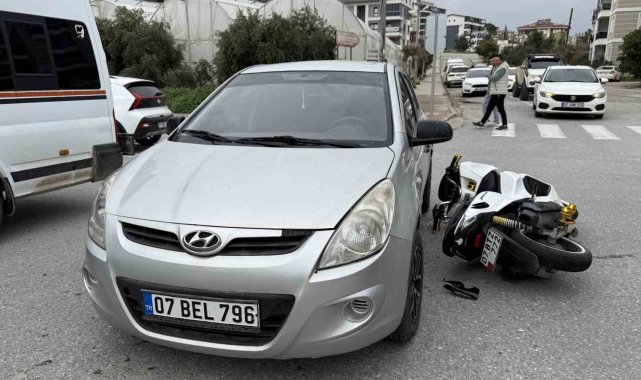 Kaza, saat 14.30 sıralarında Pazarcı Mahallesi Uğur Mumcu Caddesi üzerinde bulunan ASAT Kavşağı'nda meydana geldi. Edinilen bilgiye göre, Gümrük Sokak'tan Uğur Mumcu Caddesi'ne çıkış yapan Ali Y. yönetimindeki 07 BEL 796 plakalı Hyundai marka otomobil, çarşı istikametinden deniz yönüne seyir halinde olan Arda Y. idaresindeki 07 BTZ 772 plakalı motosikletle çarpıştı. Çarpışmanın etkisiyle motosiklet sürücüsü Arda Y. asfalt zemine savrularak yaralandı. İhbar üzerine olay yerine sağlık ve polis ekipleri sevk edildi.