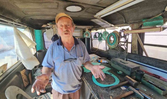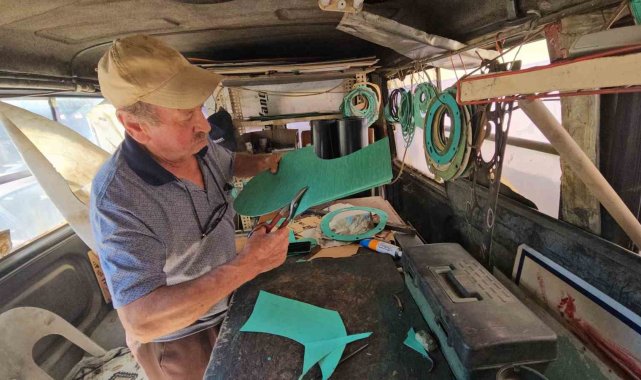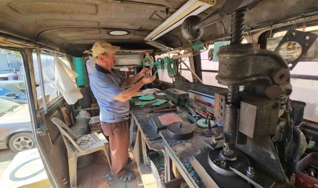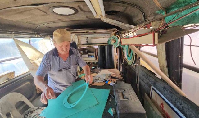 Edirne'de yaklaşık yarım asırdır keçe ve conta işçiliği yapan 69 yaşındaki İrfan Çınar, kaybolmaya yüz tutmuş mesleğini hurda bir minibüsün içinde gerçekleştiriyor.